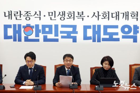 더불어민주당 한병도 원내대표가 15일 서울 여의도 국회에서 열린 정책조정회의에서 발언을 하고 있다.
