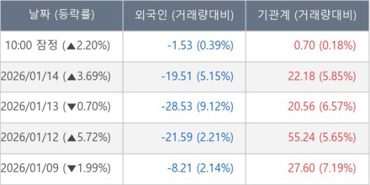 ※ 사모펀드 등 일부 기관의 순매매량은 표시되지 않음