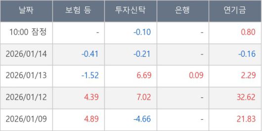 [표] 주요 기관별 순매매량 (단위 만주)