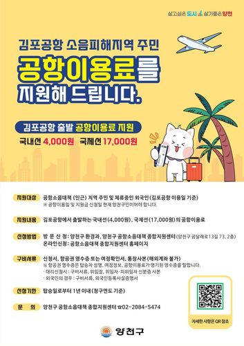 이기재 양천구청장은 "공항소음 피해는 단기간에 해소되기 어려운 만큼, 일상에서 체감할 수 있는 지원이 중요하다"며 "공항이용료 지원으로 피해주민에게 실질적인 혜택이 제공될 수 있도록 지속적으로 노력하겠다"고 말했다.
