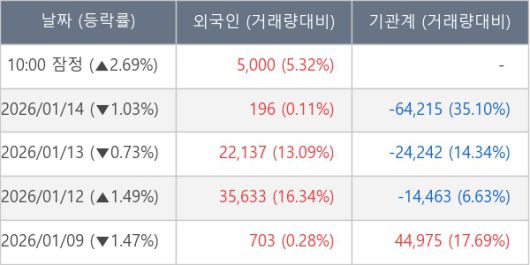 [표] 외국인ㆍ기관 순매매량 (단위 주)