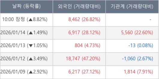 [표] 외국인ㆍ기관 순매매량 (단위 주)