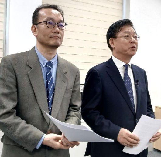 강재구 건양대 의학과 교수와 맹수석 전 충남대 로스쿨원장은 15일 대전시의회 기자실에서 기자회견을 열고 "대전·충남 행정통합후 2교육청 체제로 가면 많은 부작용이 예상된다"며 통합 교육감 체제가 필요하다고 주장했다.