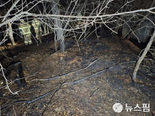 소방당국 등에 따르면 이날 오전 2시 32분께 신고자가 자택에서 휴식중 창문 너머로 밝아지는 느낌을 받아 확인해보니 주택 후면 임야에서 연기와 불꽃을 발견해 119에 신고했다.