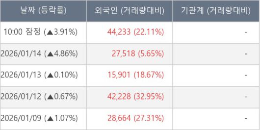 [표] 외국인ㆍ기관 순매매량 (단위 주)