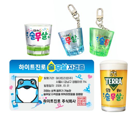 특히 영 타깃 마케팅의 일환으로 '술무살 자격증'을 선보인다. 음주가 가능한 성인이 된 순간을 기념할 수 있도록 기존 쏘맥자격증 콘셉트를 활용해 기획했으며, 신분증 확인 후 현장에서 증정한다. 최근 SNS를 중심으로 유행하는 '인증 소비' 트렌드를 반영한 것이 특징이다.