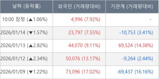 [표] 외국인ㆍ기관 순매매량 (단위 주)