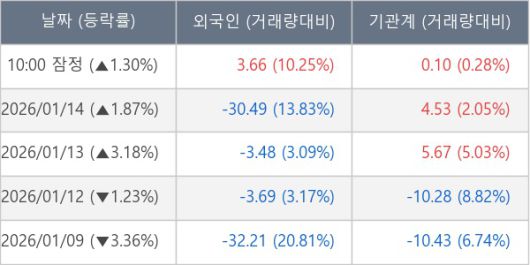 [서울=뉴스핌] 로보뉴스 = 15일 10시 15분 현재 LG전자(066570)는 외국인과 기관이 각각 3.66 만 주, 0.10 만 주 순매수(잠정) 하면서 전일 대비 1.30% (현재가 93,700원) 상승하고 있다.
