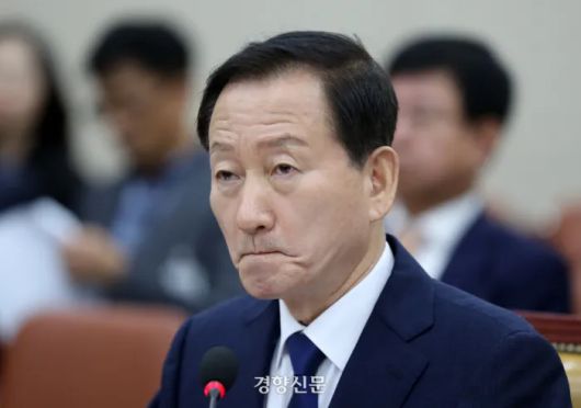 류희림 전 방송통신심의위원장이 2024년 10월 21일 국회에서 열린 국정감사에서 굳은 표정으로 질의를 듣고 있다. 박민규 선임기자 |