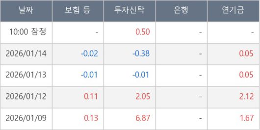 [표] 주요 기관별 순매매량 (단위 만주)