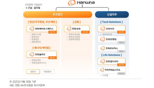그는 “순차입금(2025년 3분기 기준 5조3000억원)의 대부분이 존속법인에 귀속되더라도, 한화에어로스페이스·한화솔루션·한화생명 3개사가 기존 한화 자회사 지분가치의 약 90%를 차지한다”며 “브랜드 로열티도 존속법인에 귀속될 예정인 만큼 분할 비율을 고려하면 존속법인의 주가 메리트가 높을 것”이라고 내다봤다.