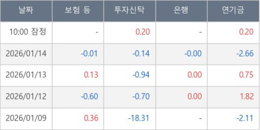 [표] 주요 기관별 순매매량 (단위 만주)