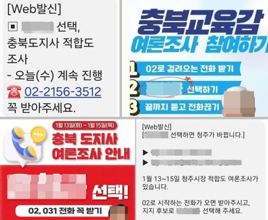 한 충북지사 출마 예정자는 문자메시지와 온라인 사회관계망서비스(SNS) 등을 통해 '02-XXXX-XXXX 꼭 받아달라'면서 여론조사 업체 전화번호를 안내해 구설에 올랐다.