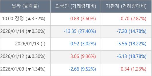 ※ 사모펀드 등 일부 기관의 순매매량은 표시되지 않음