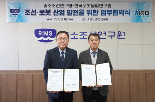 한국로봇융합연구원(KIRO, 원장 강기원)과 중소조선연구원(원장 서용석)은 2026년 1월 14일 부산에 위치한 중소조선연구원 본원에서 조선·로봇 산업 발전을 위한 업무협약을 체결했다고 밝혔다.