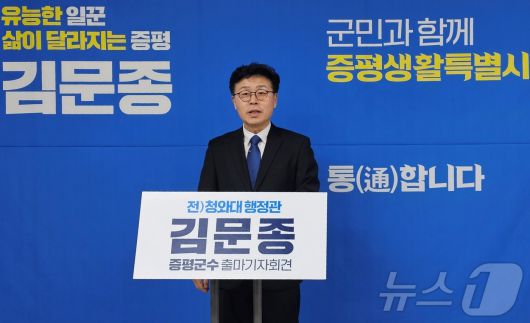 (증평=뉴스1) 이성기 기자 = 김문종 전 청와대 행정관(60)이 15일 충북 증평군청 브리핑룸에서 기자회견을 열고 증평군수 선거 출마를 선언했다.