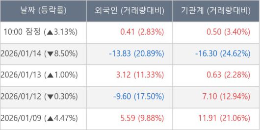 ※ 사모펀드 등 일부 기관의 순매매량은 표시되지 않음