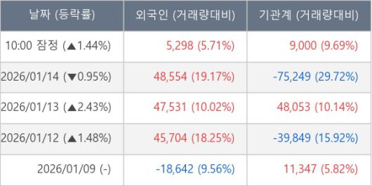 ※ 사모펀드 등 일부 기관의 순매매량은 표시되지 않음