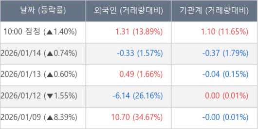 [표] 주요 기관별 순매매량 (단위 만주)