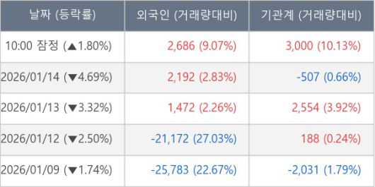 ※ 사모펀드 등 일부 기관의 순매매량은 표시되지 않음