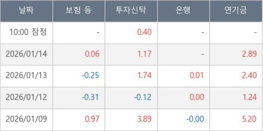 [표] 주요 기관별 순매매량 (단위 만주)