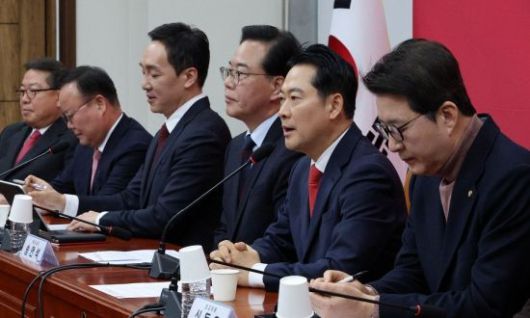 장동혁 국민의힘 대표가 15일 국회에서 열린 최고위원회의에서 발언하고 있다.