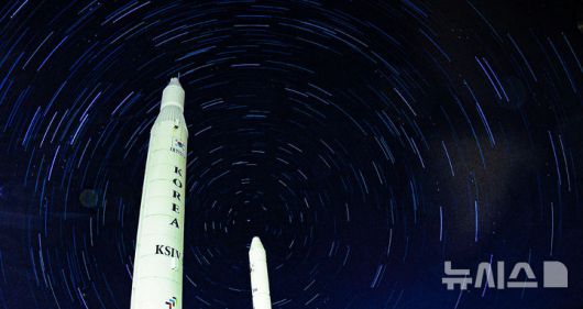[고흥=뉴시스] 최진석 기자 = 한국형 발사체 누리호 4차 발사가 성공하며 민간이 제작·조립을 맡은 발사체가 처음으로 정상 임무를 수행했다. 누리호 4차 발사는 한국형 발사체 최초의 야간비행이자 역대 최다인 13기의 위성이 탑재됐다. 우주로 향한 주탑재위성 1기와 큐브위성 12기가 모두 임무 궤도에 무사히 진입해 지상과의 교신에 성공했다. 이번 4차 성공을 계기로 정부는 6차 발사까지의 계획을 통해 발사체 제작·운용을 단계적으로 민간에 넘기는 전환 작업을 이어간다.2025년은 누리호 4차 발사 성공으로 대한민국 우주 강국 도약의 원년이자 민관이 함께 하는 '뉴 스페이스 시대'의 기점의 해이다. 사진은 나로우주센터 우주과학관 로켓광장에 우리나라에서 개발된 1단형 고체추진 로켓 KSR-Ⅰ, 2단형 고체추진로켓 KSR-Ⅱ, 액체추진 과학로켓 KSR-Ⅲ, 우주발사체 KSLV-Ⅰ(나로호)의 실물크기 로켓 모형 뒤로 별의 일주운동 궤적이 보이는 모습. (별의 일주운동 궤적은 30초로 2시간 촬영 후 각각의 사진 레이어 합성) 2025.12.30. myjs@newsis.com |