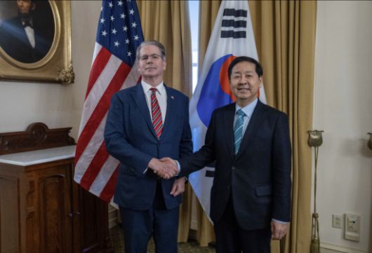 12일(현지시간) 회담하는 구윤철 경제부총리 겸 재정경제부 장관과 스콧 베선트 미국 재무부 장관.(출처:재정경제부) |