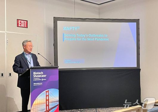 김택성 현대바이오 USA 대표가 발표하고 있다. /제공 = 현대바이오사이언스 |