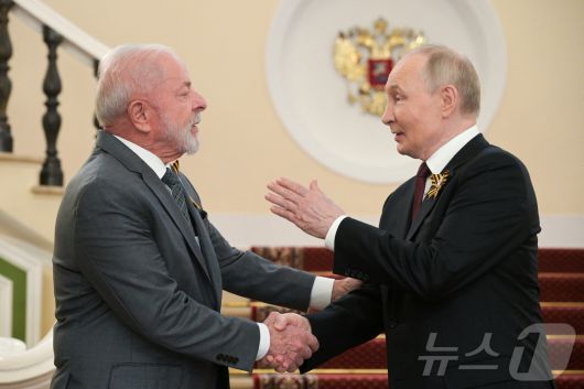 블라디미르 푸틴 러시아 대통령(오른쪽)과 루이스 이나시우 룰라 다시우바 브라질 대통령이 5월 모스크바에서 정상회담했다. 2025.05.09 ⓒ 로이터=뉴스1 ⓒ News1 이지예 객원기자 |