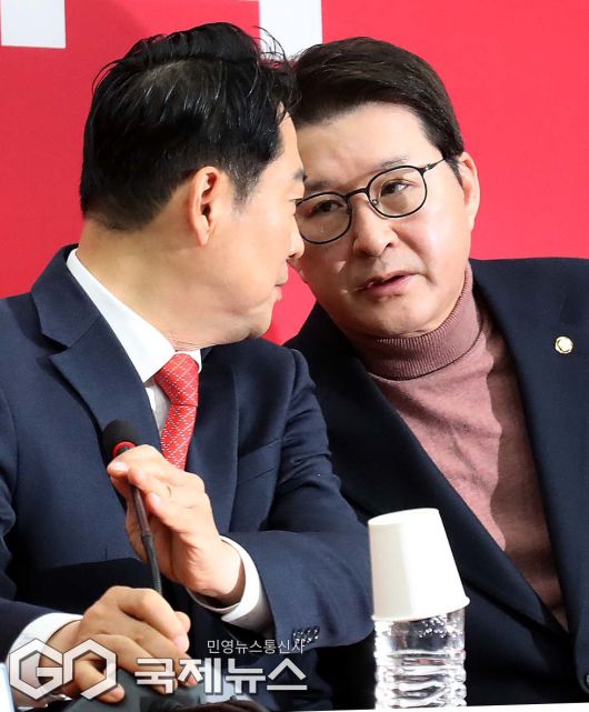 (서울=국제뉴스) 장동혁 국민의힘 대표와 신동욱 최고위원이 15일 오전 서울 여의도 국회에서 열린 최고위원회의에서 논의를 하고 있다./사진=이용우 기자