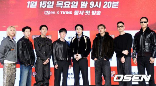 릴 모쉬핏, 박재범, 로꼬, 그레이, 지코, 크러쉬, 허키 시바세키, 제이통이 포토타임을 하고 있다. 2026.01.15 / jpnews@osen.co.kr