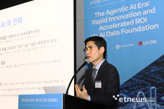 최기영 스노우플레이크 한국지사장은 15일 서울 강남구 그랜드 인터컨티넨탈 서울 파르나스에서 열린 전자신문 주최 'CIO·CISO 세미나'에서 '2026년 AI 데이터 전망'을 주제로 발표하며 이같이 강조했다.