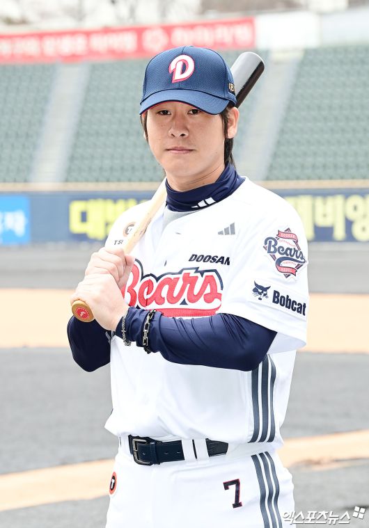 (엑스포츠뉴스 잠실, 박지영 기자) 15일 오전 서울 송파구 잠실야구장에서 열린 '2026 두산 베어스 창단 기념식'에 참석한 박찬호가 기념 촬영을 하고 있다.