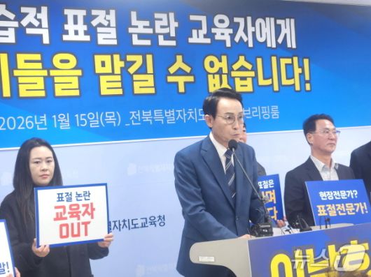 (전주=뉴스1) 임충식 기자 = "칼럼, 기고문 등을 상습 표절한 교육자에게 우리 아이들을 맡길 수는 없습니다."