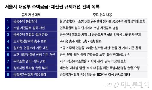서울시 대정부 주택공급·재산권 규제개선 건의 목록/그래픽=윤선정 |