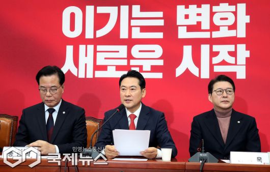 (서울=국제뉴스) 장동혁 국민의힘 대표가 15일 오전 서울 여의도 국회에서 열린 최고위원회의에서 발언을 하고 있다./사진=이용우 기자