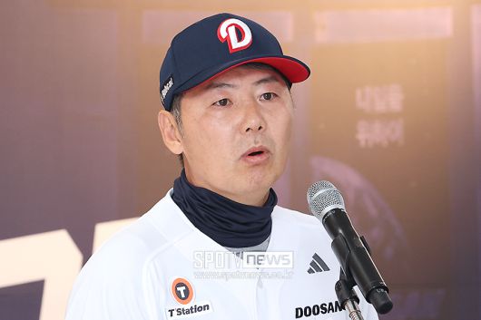 [스포티비뉴스=잠실, 곽혜미 기자] 2026 두산 창단기념식이 15일 오전 서울 송파구 잠실야구장에서 열렸다. 두산 김원형 감독이 인사말을 하고 있다. <저작권자 ⓒ SPOTV NEWS. 무단전재 및 재배포 금지>