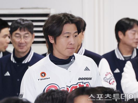 [스포츠투데이 권광일 기자] 15일 서울 잠실야구장에서 열린 두산 베어스 시무식에 박찬호가 입장하고 있다. 2026.01.15. [스포츠투데이 권광일 기자 sports@stoo.com]