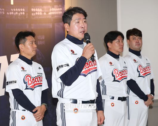[스포티비뉴스=잠실, 곽혜미 기자] 2026 두산 창단기념식이 15일 오전 서울 송파구 잠실야구장에서 열렸다. 두산 홍원기 코치가 인사말을 하고 있다. <저작권자 ⓒ SPOTV NEWS. 무단전재 및 재배포 금지>