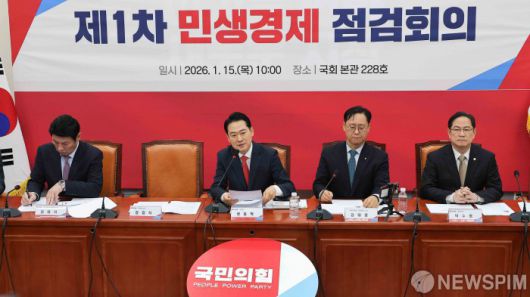[서울=뉴스핌] 윤창빈 기자 = 장동혁 국민의힘 대표가 15일 서울 여의도 국회에서 열린 민생경제 점검회의 1차 회의에서 모두발언을 하고 있다. 2026.01.15 pangbin@newspim.com