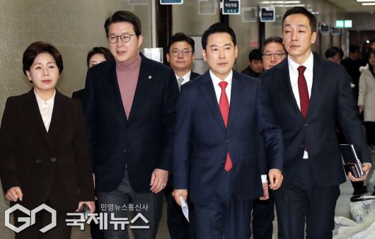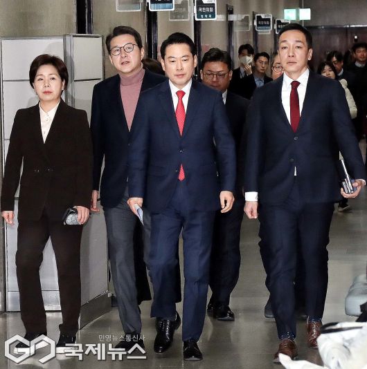 (서울=국제뉴스) 장동혁 국민의힘 대표와 최고위원들이 15일 오전 서울 여의도 국회에서 열린 최고위원회의에 참석을 하고 있다./사진=이용우 기자