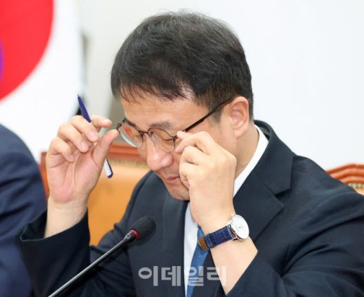 [이데일리 방인권 기자] 한병도 더불어민주당 원내대표가 15일 서울 여의도 국회에서 열린 '더불어민주당, 정책조정회의'에서 안경을 고쳐쓰고 있다.