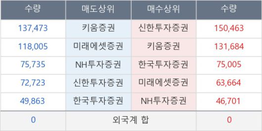 [표] 주요 기관별 순매매량 (단위 주)