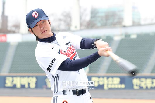 [스포티비뉴스=잠실, 곽혜미 기자] 2026 두산 창단기념식이 15일 오전 서울 송파구 잠실야구장에서 열렸다. 두산 박찬호가 기념 촬영을 하고 있다. <저작권자 ⓒ SPOTV NEWS. 무단전재 및 재배포 금지>