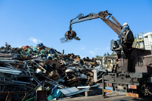 광양제철소 스크랩 야드에서 한 직원이 회수된 스크랩을 정리하는 작업을 진행하고 있다. /광양제철소 |