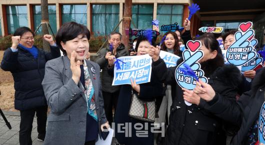 [포토]지지자들 응원 받으며 출마선언장 향하는 서영교