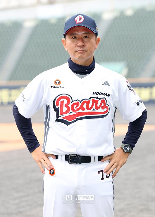 [스포티비뉴스=잠실, 곽혜미 기자] 2026 두산 창단기념식이 15일 오전 서울 송파구 잠실야구장에서 열렸다. 두산 손시헌 코치가 기념 촬영을 하고 있다. <저작권자 ⓒ SPOTV NEWS. 무단전재 및 재배포 금지>