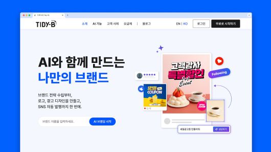 2021년 설립된 타이디비는 소상공인과 스타트업을 대상으로 브랜드 전략 수립부터 디자인 생성, 마케팅 콘텐츠 게시, 성과 분석까지 브랜딩 전 과정을 AI로 자동화한 올인원 브랜딩 플랫폼을 운영하고 있다. 전문 인력이나 외주 대행사 없이도 비교적 저비용으로 브랜딩과 마케팅 운영이 가능하도록 설계된 것이 특징이다.