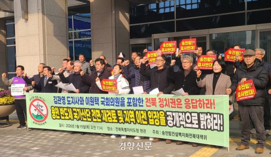 송전탑건설백지화전북대책위원회는 15일 전북도청 앞에서 기자회견을 열고 “용인 반도체 산단의 전면 재검토와 지역 이전은 국가 균형발전과 산업 경쟁력을 함께 고려해야 할 사안”이라며 “전북을 에너지 공급지로 고착시키는 구조를 더 이상 방치해서는 안 된다”고 밝혔다.
